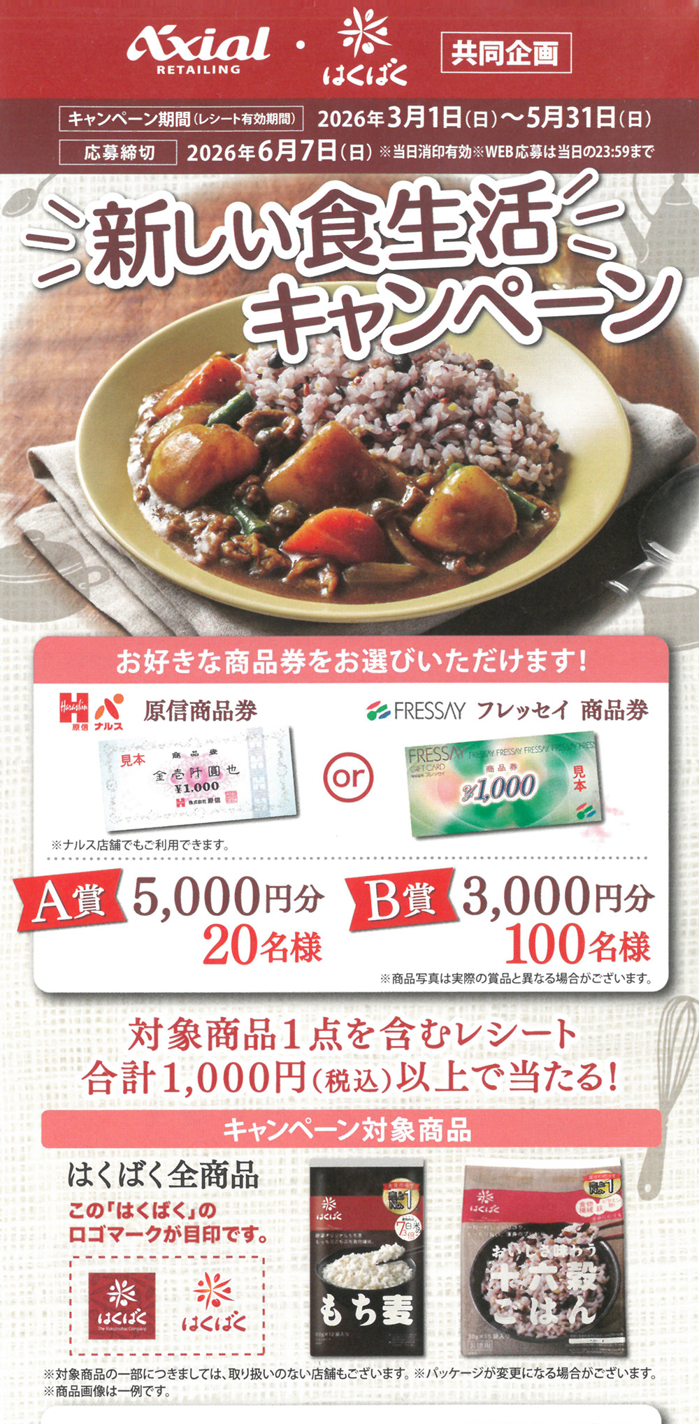 アクシアル・はくばく共同企画「新しい食生活キャンペーン」係