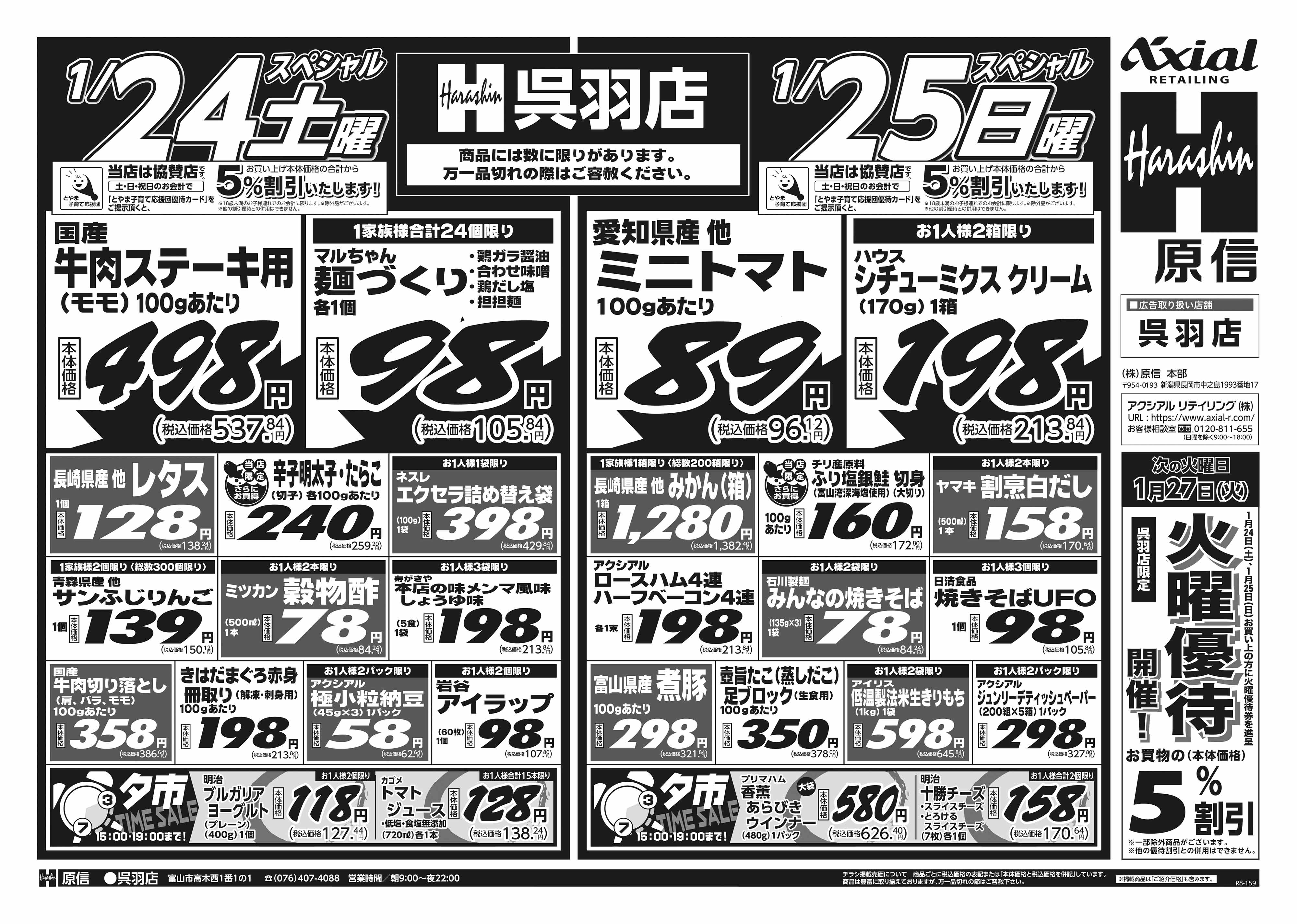 原信 呉羽店 1月24日 土日月スペシャル号