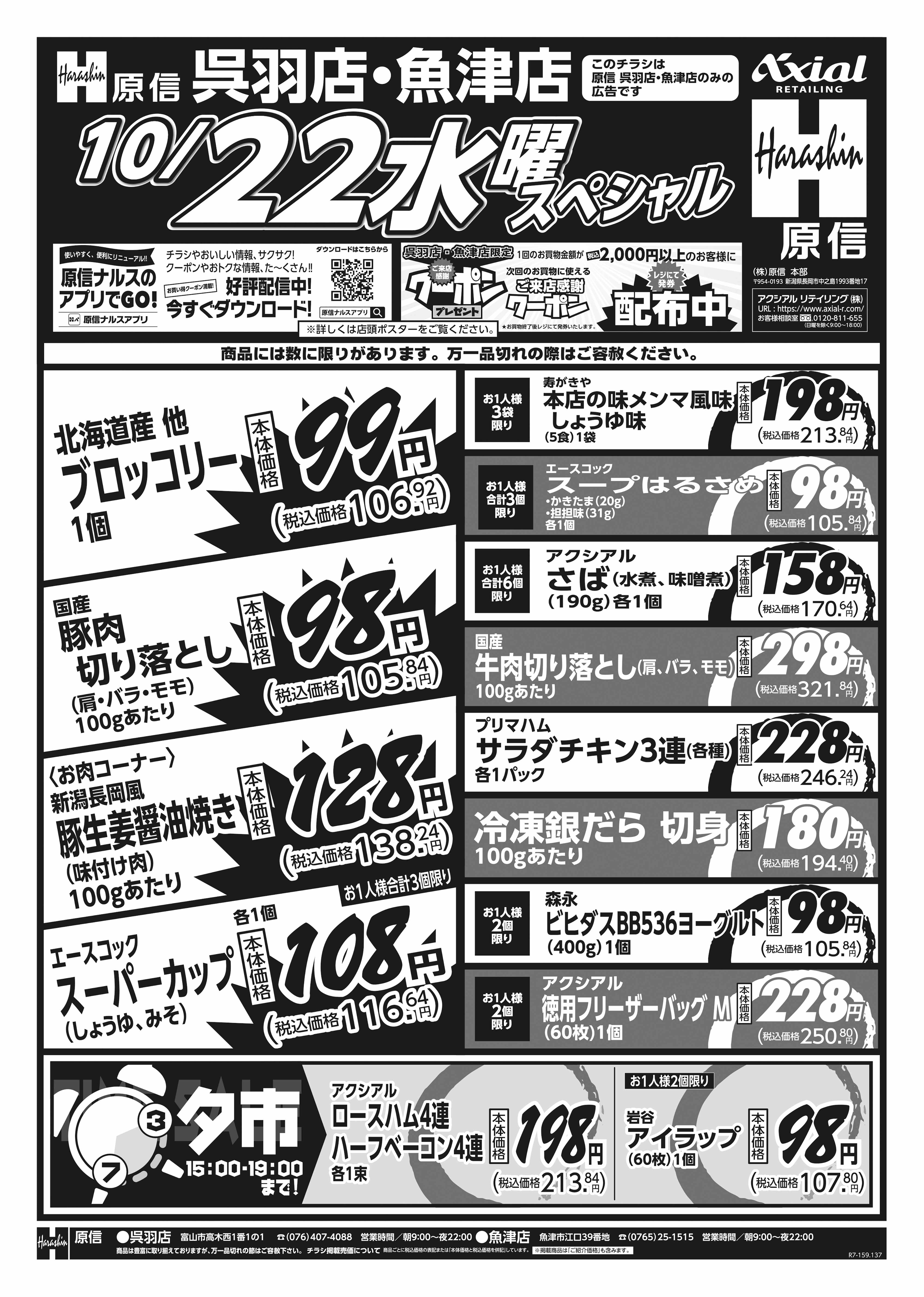 原信 呉羽店 10月21日 火水スペシャル号