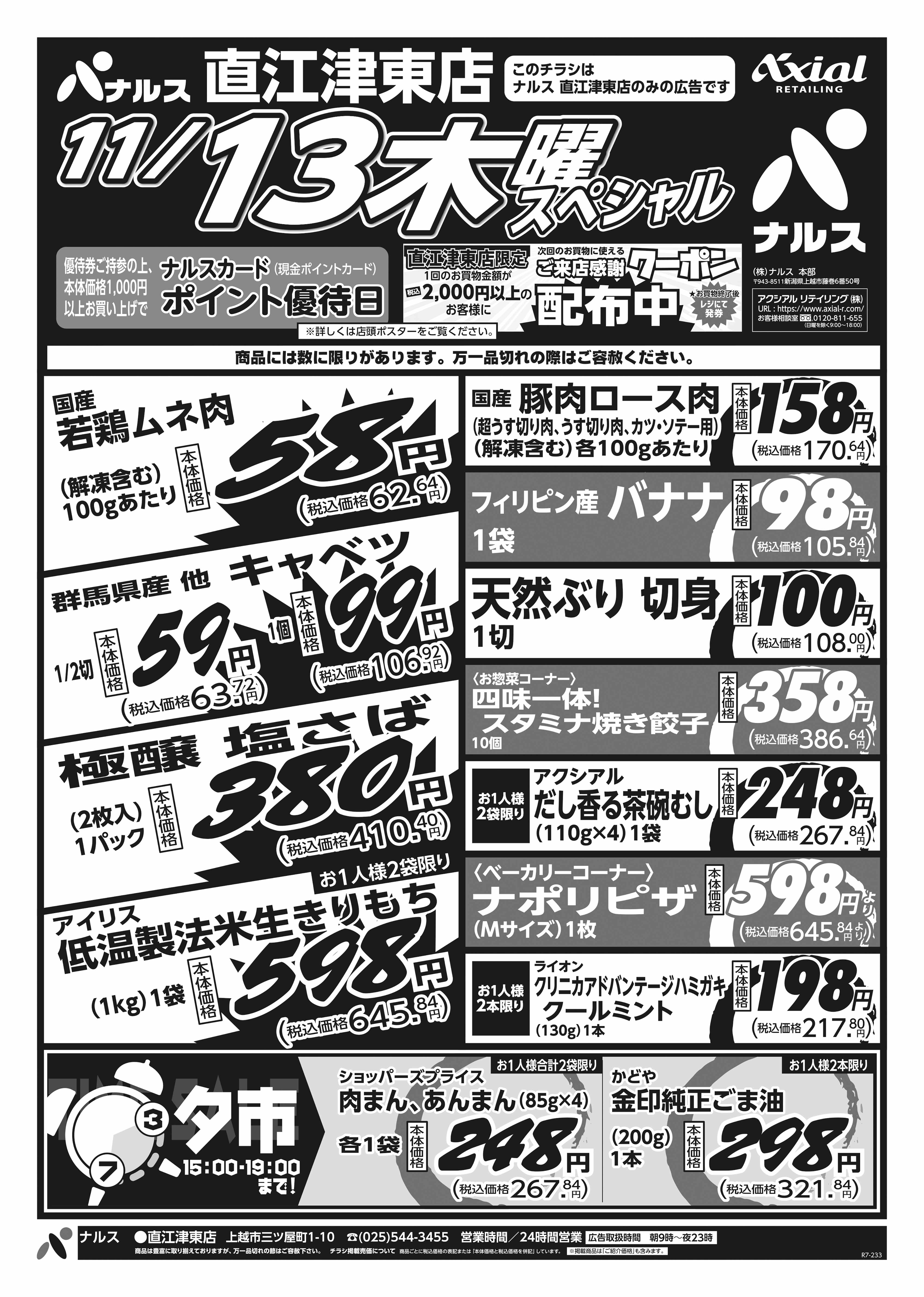 ナルス 直江津東店 11月13日 木金スペシャル号