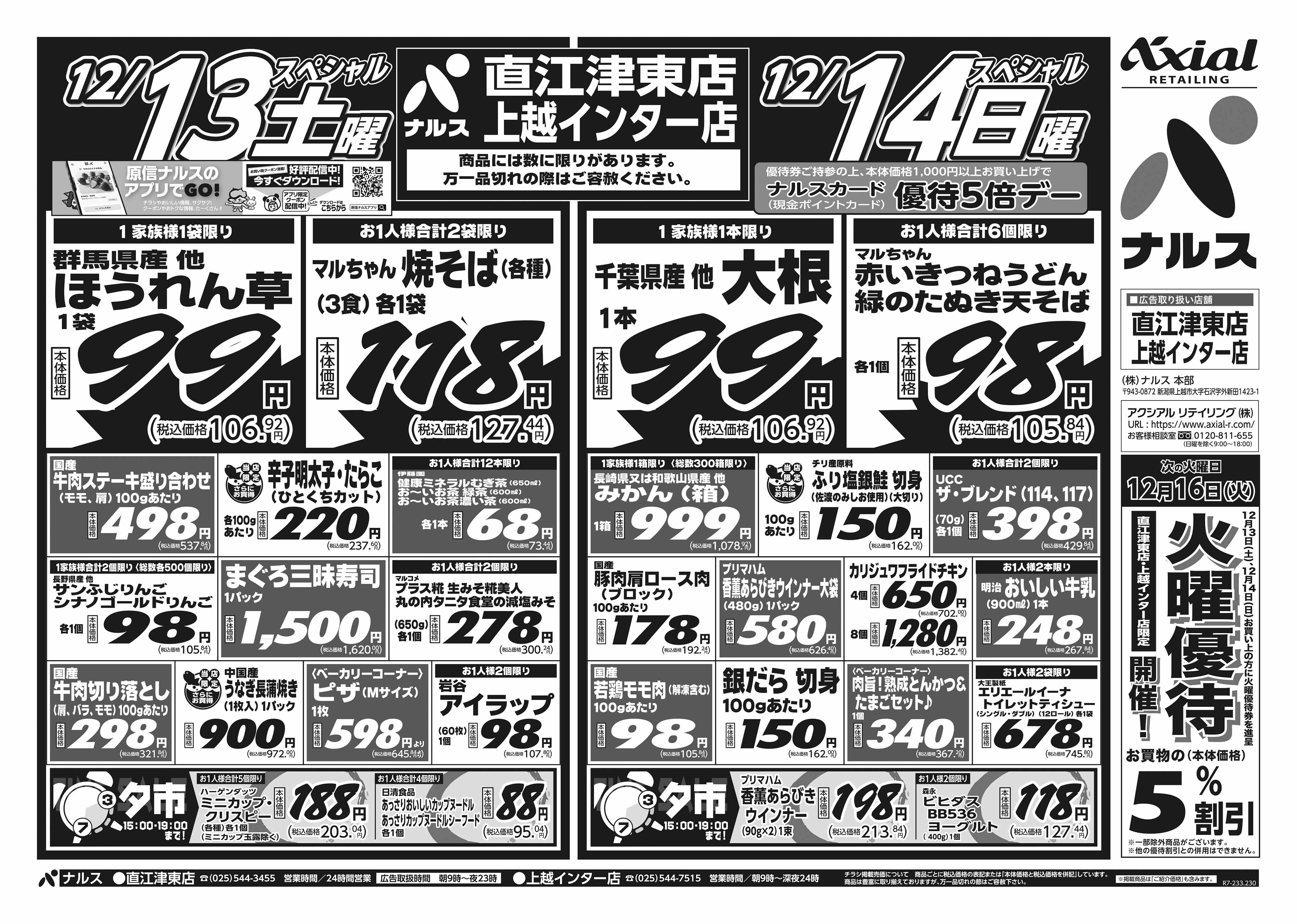 ナルス 上越インター店 12月13日 土日月スペシャル号