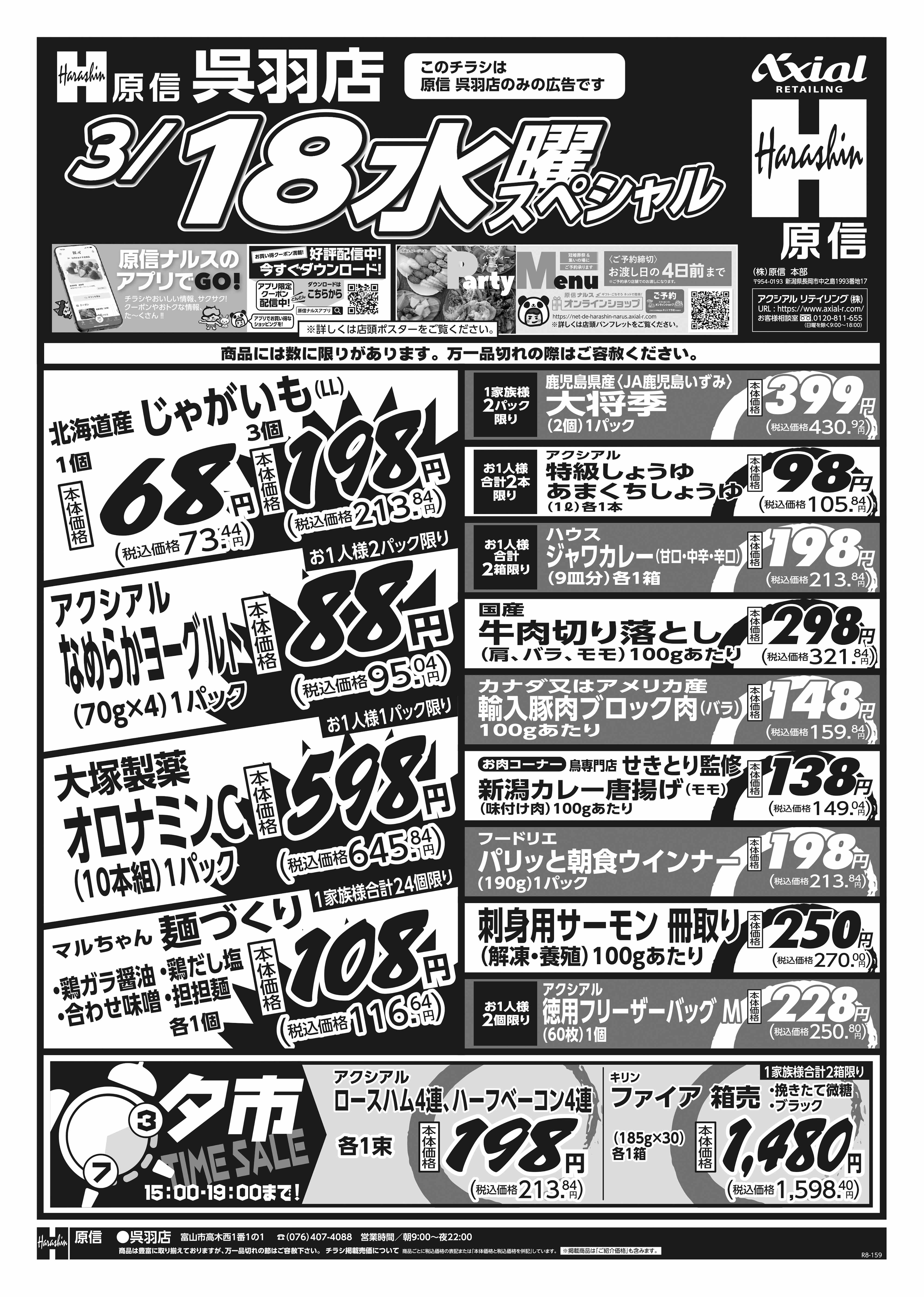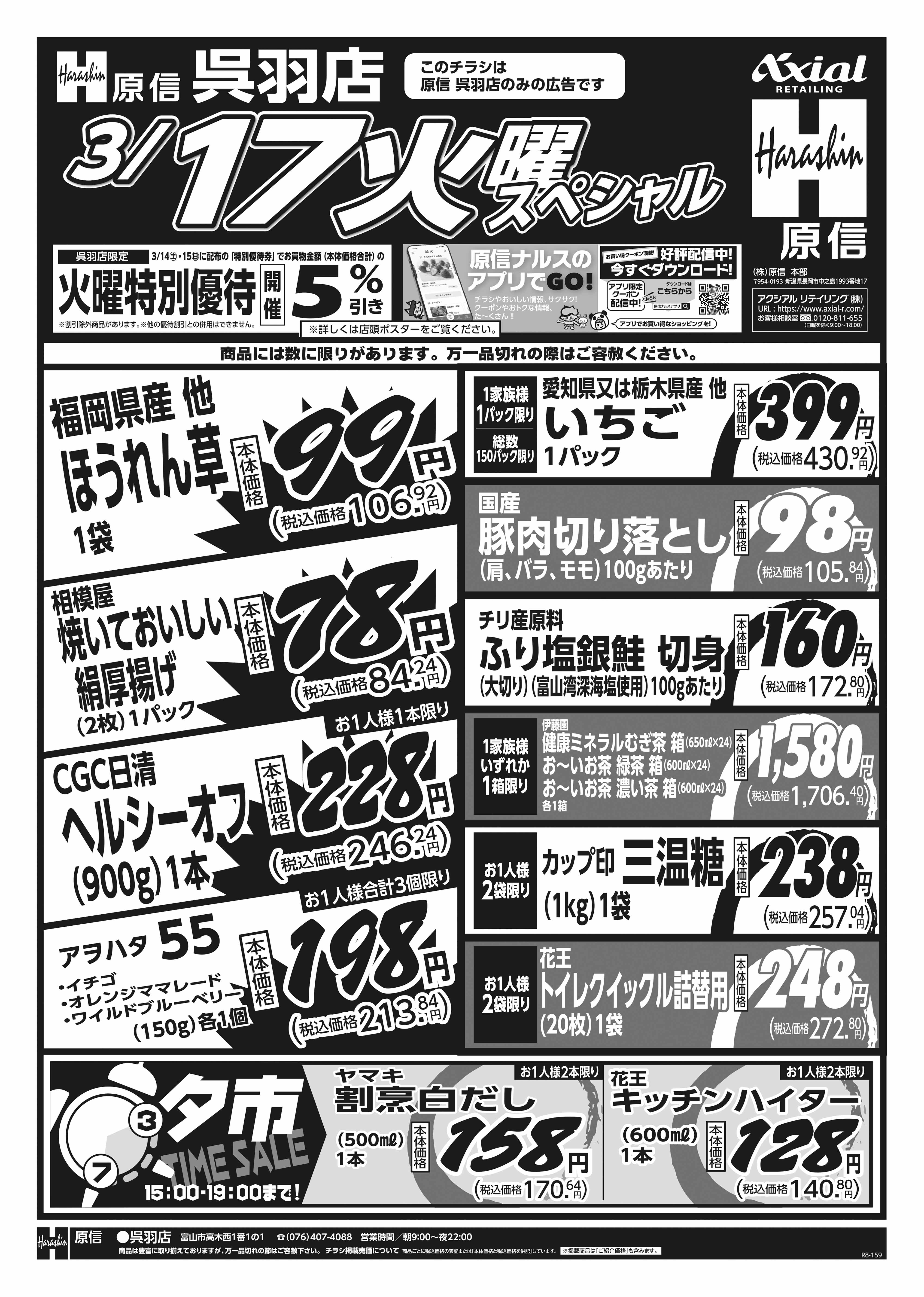 原信 呉羽店 3月17日 火水スペシャル号