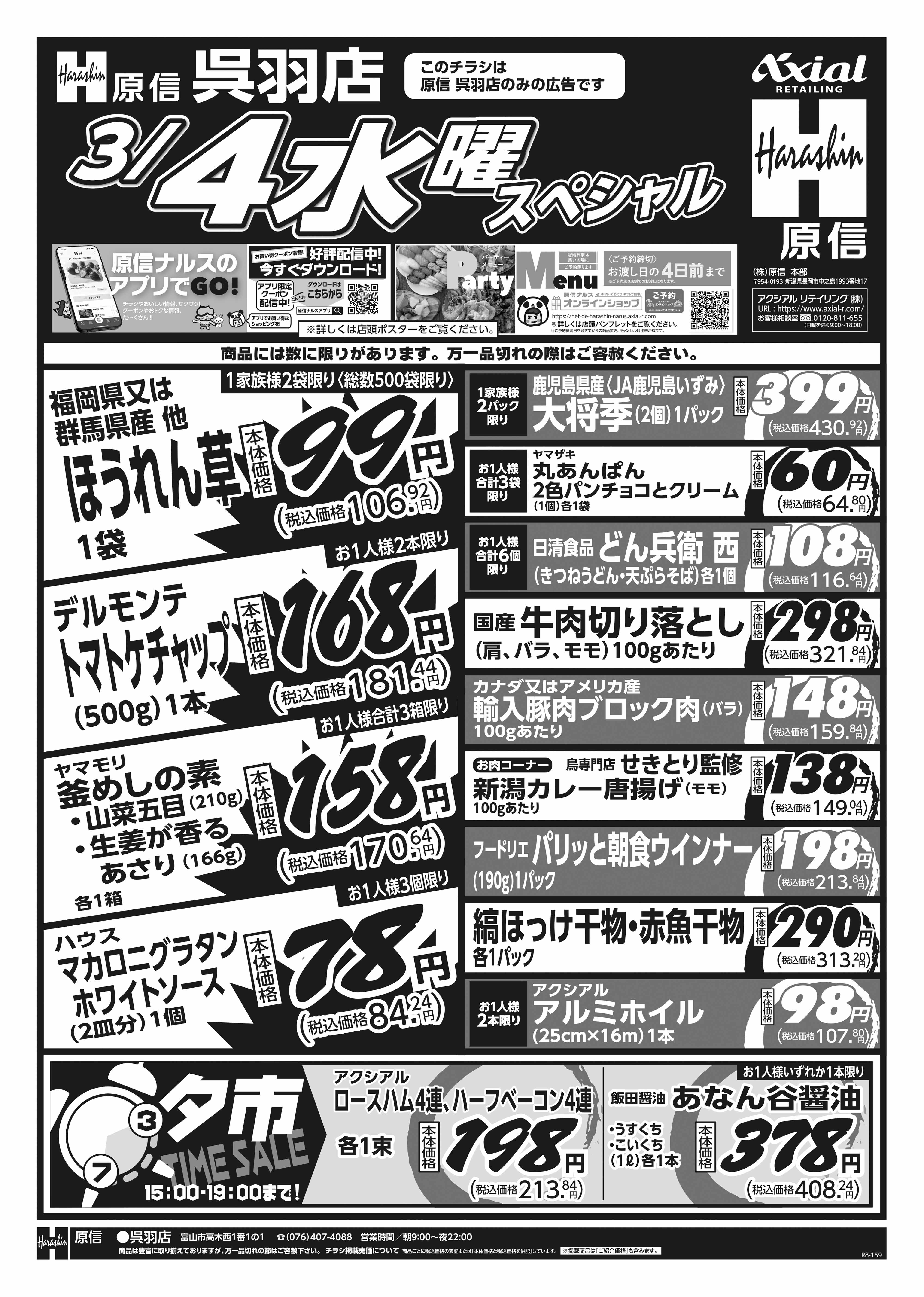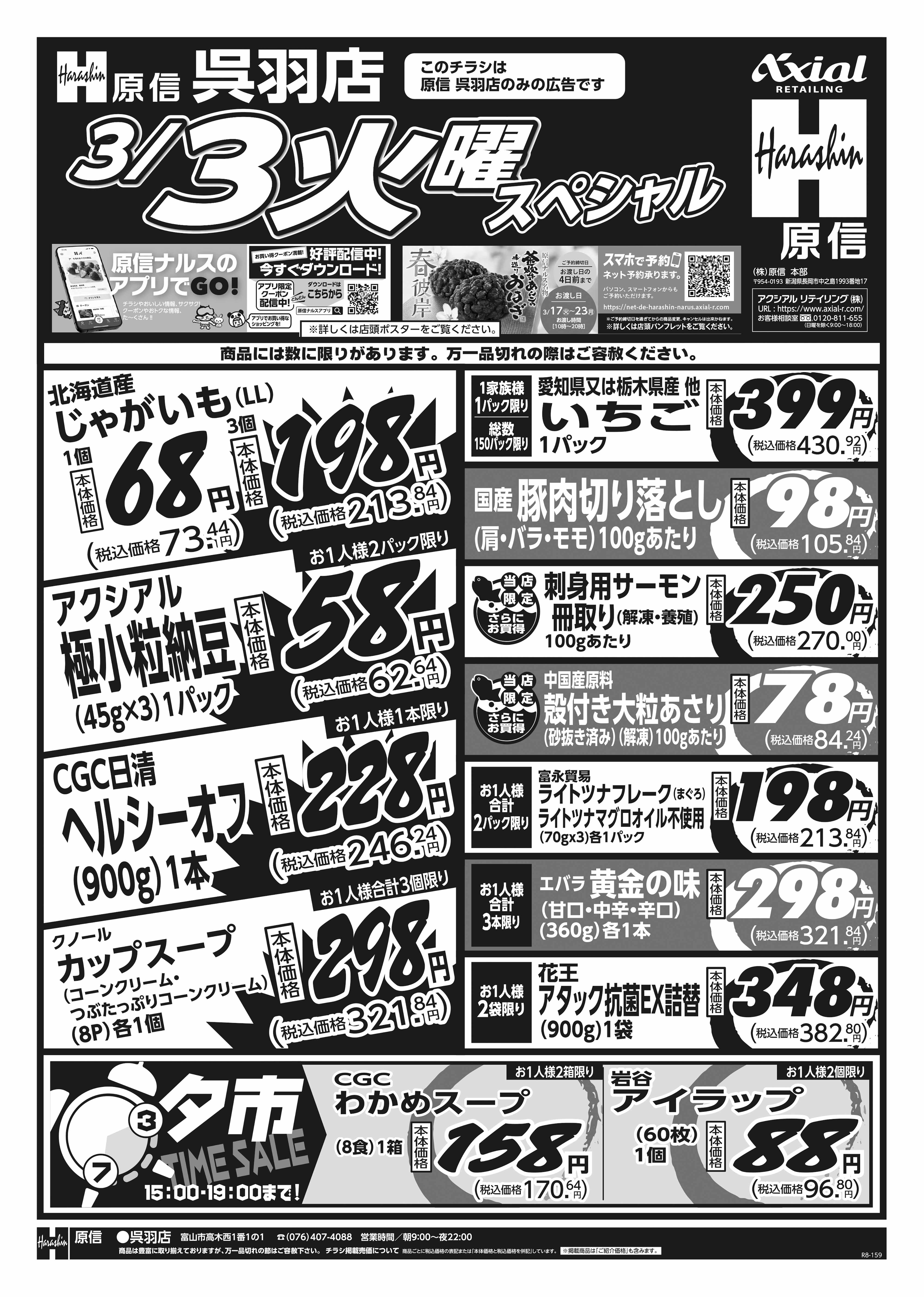原信 呉羽店 3月3日 火水スペシャル号