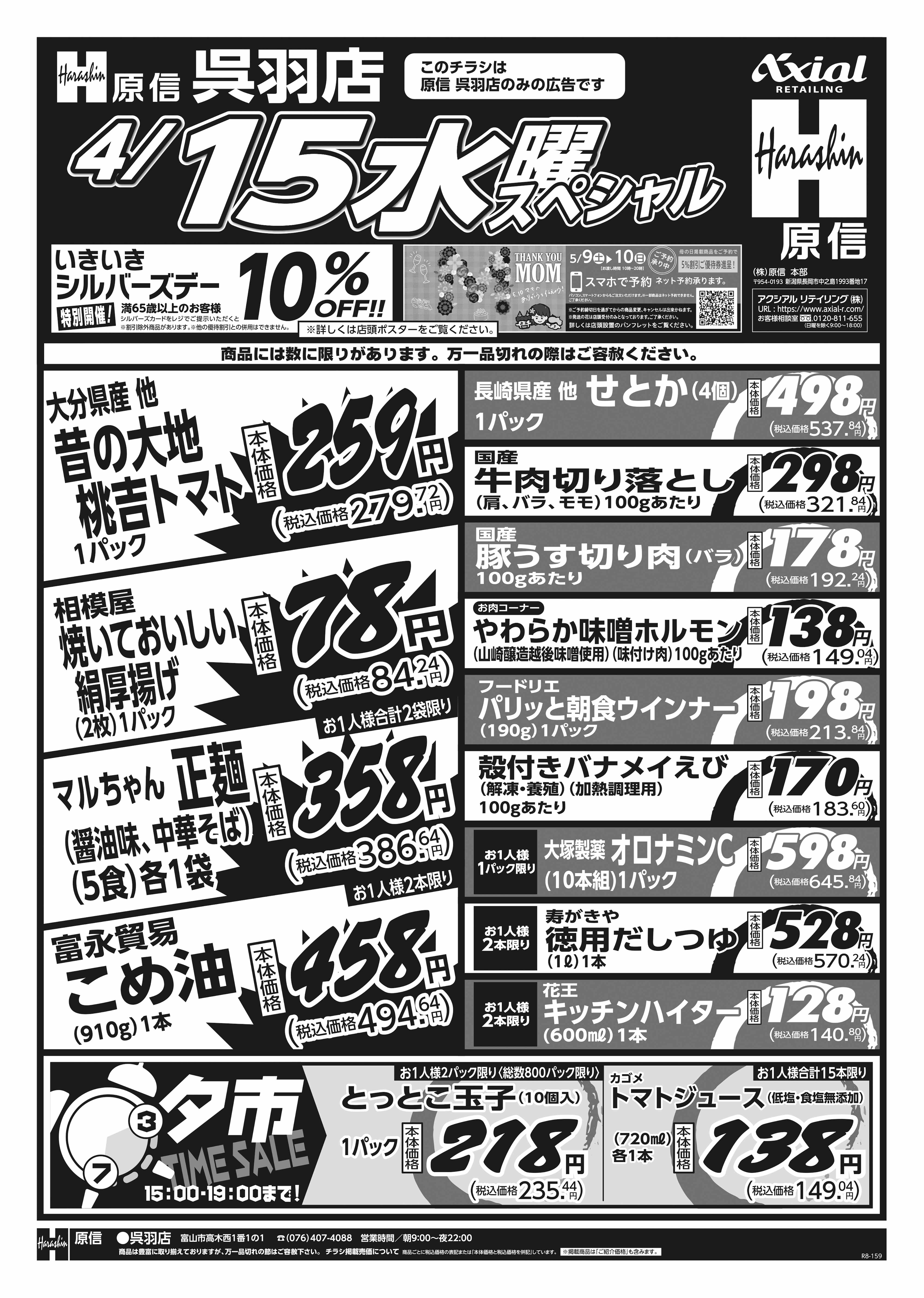 原信 呉羽店 4月14日 火水スペシャル号