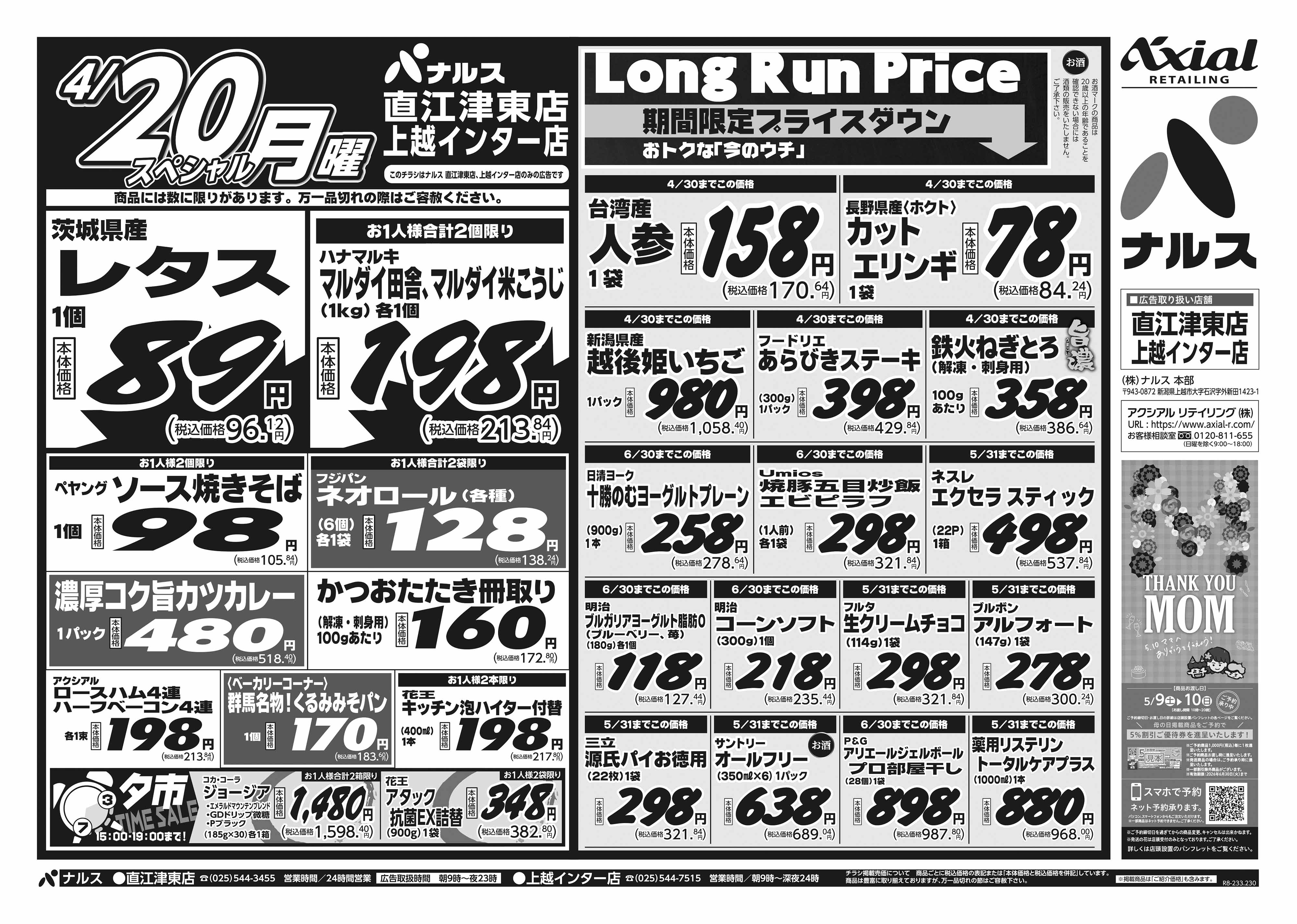 ナルス 上越インター店 4月18日 土日月スペシャル号
